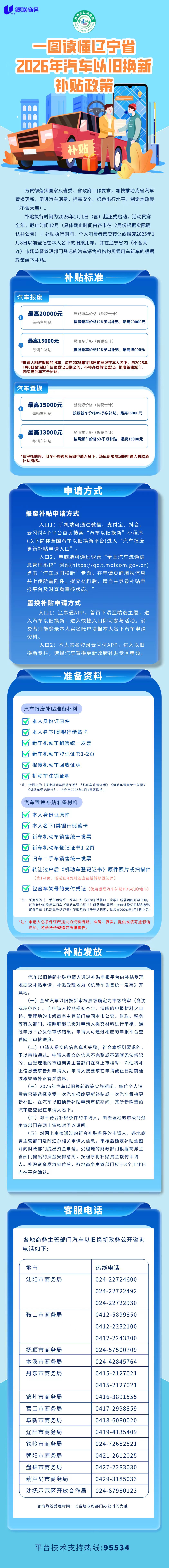 一图读懂辽宁省2026年汽车以旧换新补贴政策